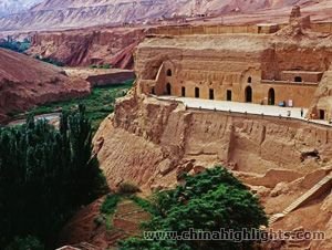 - Развалины Гаочан (Gaochang) (1.5 hours): Название города означает 'Город короля". Он был основан в первом веке до н. э. и брошен во время трудных времен в 15 веке. Это место являлось важным пунктом на Шелковом пути. Взобравшись на высоту, чтобы насладиться далекими видами, можно увидеть весь город, который предстает в плоскости и имеет форму неправильного квадрата. Этот район разделен на три части внешнего города, внутреннюю часть города и городской дворец. Общая площадь этой местности составляет около двух миллионов квадратных метров.Теперь пустыня возвращает себе назад то, что ей некогда принадлежало. Вы можете совершить прогулку по развалинам на телеге, запряженной ослом. Некоторые из древних руин еще довольно хорошо видны, другие уже исчезают в пыли. Несколько участков развалин уже частично восстановлены и контуры внешней, внутренней и дворцовой частей города видны ясно. Этот пустынный древний город вызывает потрясающее ощущение хода истории и течения времени. В этом городе нет деревьев, так что летом вам придется смириться с тем, что вы будете находиться под палящим солнцем.