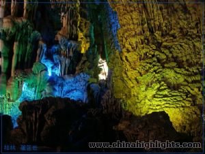 - пещера Тростниковая флейта (1 hour): Пещера Тростниковая флейта находится в северо-западном пригороде Гуйлиня (это всего 4 км от центра). Пещера получила такое название потому, что из произрастающего снаружи тростника люди умеют делать флейты. Эта пещера считается самой большой и интересной пещерой в г. Гуйлинь (Guilin).Длина этой пещеры составляет 240 м. Во время тура посетители проходят около 550 м. В пещере полно сталактитов, сталагмитов, различных каменных образований самых причудливых форм. Посещение этой пещеры длится около 40 минут. Посетителям приходится преодолеть много ступеней. Будьте осторожны, свет здесь не очень яркий. Ваш гид будет иметь при себе фонарь.