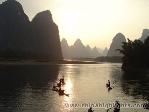 - Круиз по реке Ли (4 hours): Круиз по реке Ли между Гуйлинем и Яншо может стать изюминкой любого тура по Китаю. На протяжении 83 км пути вас будут сопровождать причудливой формы горы, покрытые бамбуковым лесом, прямо с борта судна можно будет наблюдать повседневную жизнь крестьян. Круиз по реке Ли включен во все туры в Гуйлине. Между живописными известняковыми пиками вы увидите бамбуковые рощи, крестьян, работающих на полях, буйволов, которые тянут повозки или охлаждают свои тела в водах реки. Вы также увидите рыбаков, бесшумно скользящих по воде на своих узких бамбуковых плотах. Если вам повезет, то вы сможете увидите знаменитую рыбалку с помощью бакланов. Корабли отправляются от разных пристаней в зависимости от высоты воды в реке и времени года.
