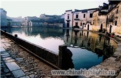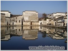 Пруд Луны: Пруд Луны имеет историю, уходящую, как указано выше, в царствовании императора Чжу Ди из династии Мин. Хотя часть канала, которая систематически ткет свой путь через деревню, Пруд Луны также подается с помощью пружины, которая. вносит свой вклад прохладе и свежести остального канала в нижнем течении от пруда Луны. Утки процветают в пруде, который, на фоне соседних зданий, с их тонким дымом свернувшись из труб, является одним из самых живописных мест в все деревни Хунцунь.
