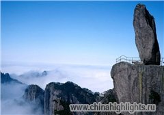 Северный пик горы Хуашань также часто называют Пиком, стоящим в облаках из-за трех окружающих его скал. Только одна узкая тропинка ведет к скале Касающейся уха.