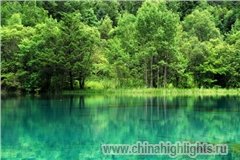 Озеро Пять цветков — мелкое разноцветное озеро, дно которого перекрещено упавшими стволами деревьев.